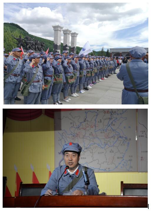 前往六盤山途中,黨員們開展了唱紅歌、講紅色故事、朗誦紅色詩詞等活動(dòng),現(xiàn)場氣氛十分熱烈;到達(dá)六盤山后,黨員們穿紅軍服,接過紅一、二、四方面軍軍旗,沿著象征著紅軍二萬五千里長征的紅軍小道,途中經(jīng)過紅軍長征經(jīng)歷的“遵義會(huì)議”、“四渡赤水”、“飛奪瀘定橋”、“巧渡金沙江”、“紅軍過草地”、“天險(xiǎn)臘子口”等大事件微縮景觀。在六盤山頂峰廣場三軍會(huì)師紅旗墻前,全體黨員重溫了入黨誓詞,列隊(duì)進(jìn)入紅軍長征紀(jì)念館。在紀(jì)念館里,大家合唱了紅歌《歌唱祖國》,上了一次別開生面的黨課,在講解員的帶領(lǐng)下參觀革命文物陳設(shè)。再一次重溫了黨的光輝歷程,接著同志們就地吃了一頓紅軍餐,親身體驗(yàn)到了紅軍長征的悲壯歷程和經(jīng)受的艱難困苦,感受偉大的長征精神。