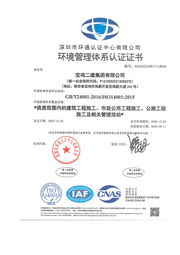 環(huán)境管理體系證書