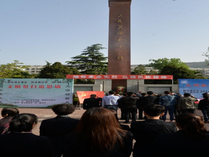 為悼念革命烈士,緬懷先烈的豐功偉績,清明節(jié)前夕,4月3日上午,公司總部黨支部組織黨員員工到寶天烈士紀(jì)念館參加新寶路社區(qū)組織的“緬懷革命先烈,弘揚(yáng)民族精神”2018年度清明節(jié)公祭活動,祭奠為修建寶天鐵路而捐軀的鐵道兵烈士,緬懷先烈偉績??偛坎糠贮h員員工參加祭奠儀式。
