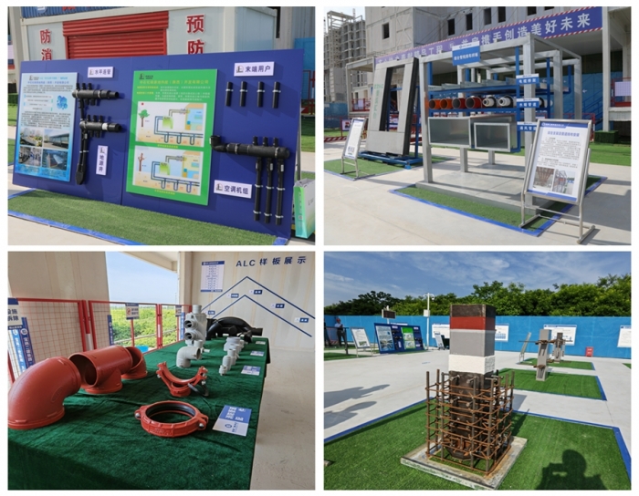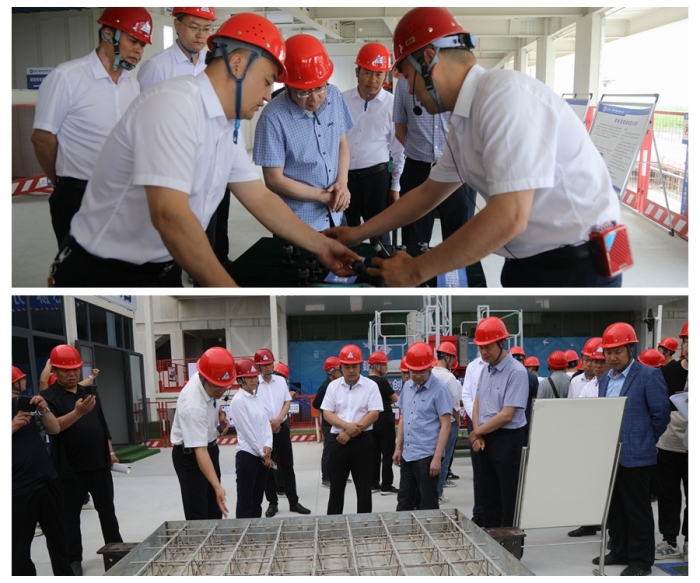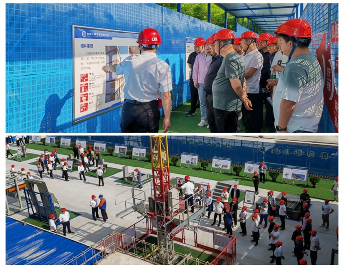 觀摩現(xiàn)場以視頻、展板、實體、樣板等多方位形式,對綠色建造、智能建造、關(guān)鍵施工技術(shù)共計10余項創(chuàng)新技術(shù)進行集中展示,全面展示了裝配式鋼結(jié)構(gòu)體系、綠色建筑材料的應(yīng)用、文明施工管理現(xiàn)代化模式。