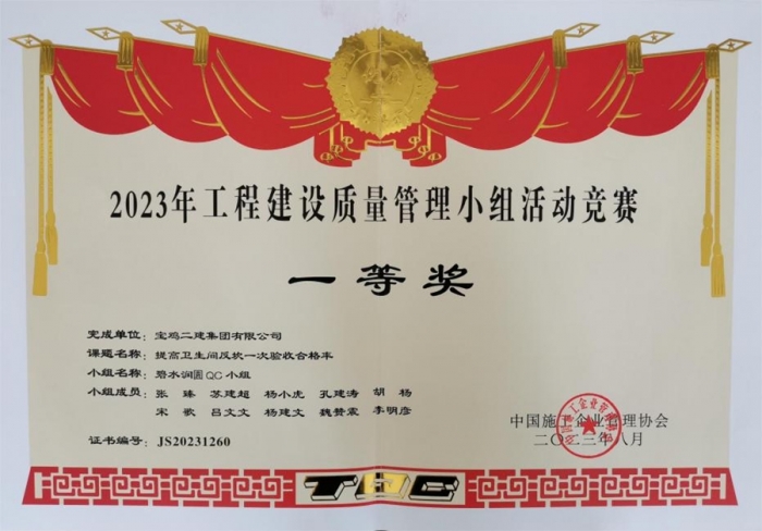 最終,碧水潤園QC小組“提高衛(wèi)生間反坎一次驗(yàn)收合格率”榮獲2023年工程建設(shè)質(zhì)量管理小組活動競賽一等獎,技術(shù)質(zhì)量部QC小組“提高屋面廣場磚施工驗(yàn)收合格率”榮獲2023年工程建設(shè)質(zhì)量管理小組活動競賽三等獎,明星QC小組“高層泵管清洗水處理技術(shù)創(chuàng)新”榮獲2023年工程建設(shè)質(zhì)量管理小組活動競賽三等獎。